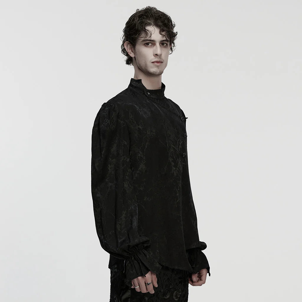 Stap in de wereld van donkere elegantie met dit vintage-geïnspireerde shirt, perfect om een gotische charme aan je garderobe toe te passen.