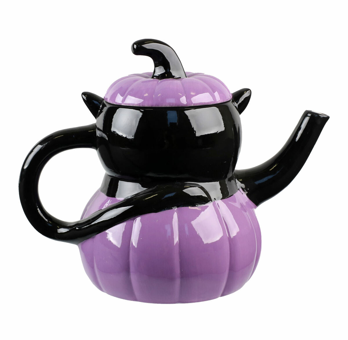 Maak je koffie- of theeritueel een stuk specialer met de 'Meowloween' theepot. Ongelooflijk vakmanschap - met een pompoen- en kattenontwerp en een afneembaar deksel. Deze opvallende theepot straalt coole vibes uit – de perfecte toevoeging aan elke griezelige keuken! Een prachtig cadeau voor een gelukkige Goth!