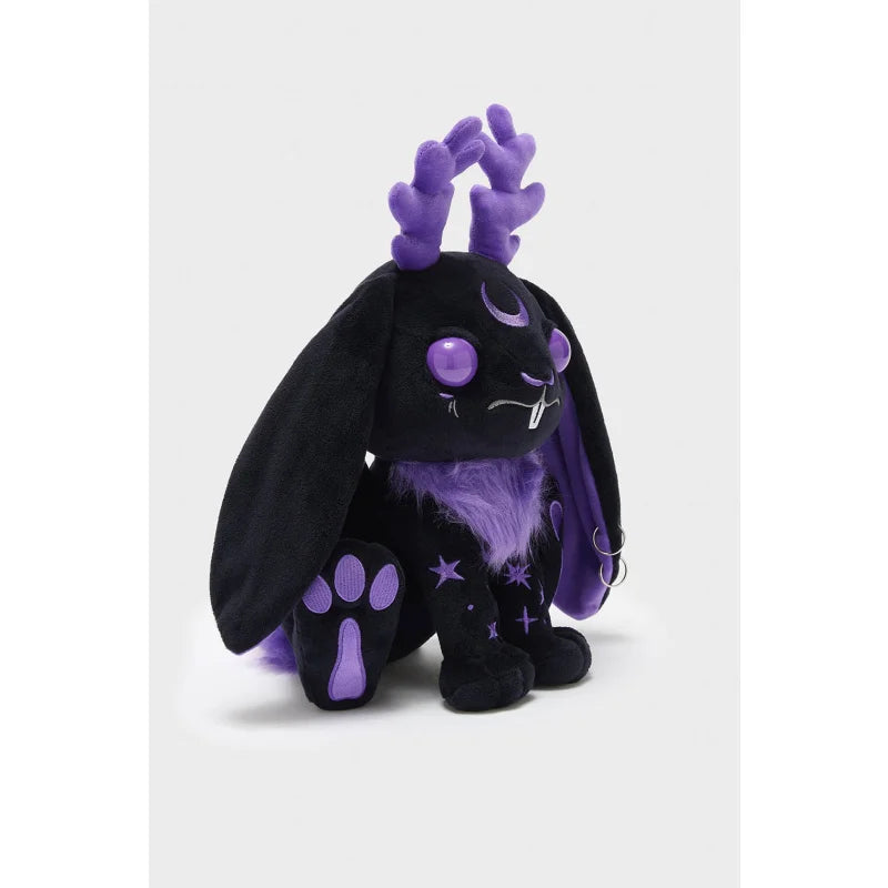 Een donkere droom in zwart en paars - Misty is de pluizige manifestatie van kosmische magie. Met haar violette kristallen ogen, bizarre gewei en geborduurde sterrenvacht lijkt ze net te ontsnappen aan een heksencoven. Haar lange oren, pluizige buik en metalen piercingringen geven haar een rebelse charme – schattig, maar met een vleugje chaos. Of het nu als metgezel is bij vollemaanrituelen of als beschermer van je nachtmerries – Misty is meer dan alleen een knuffel. Zij is je occulte knuffelvriendin.