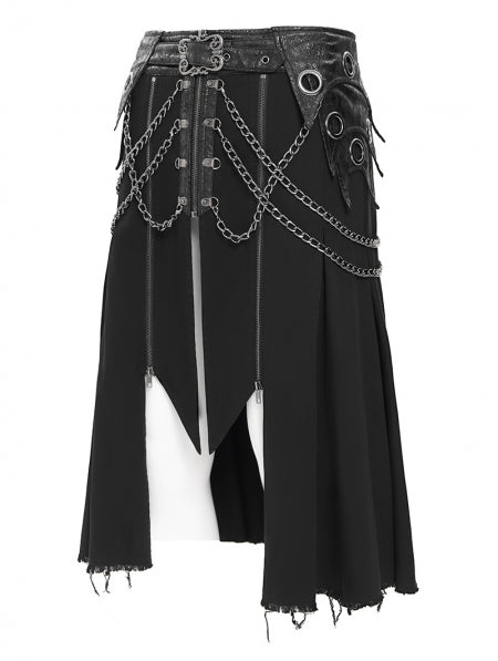 - Twee functionele ritsen scheiden de kortere voorpanelen
