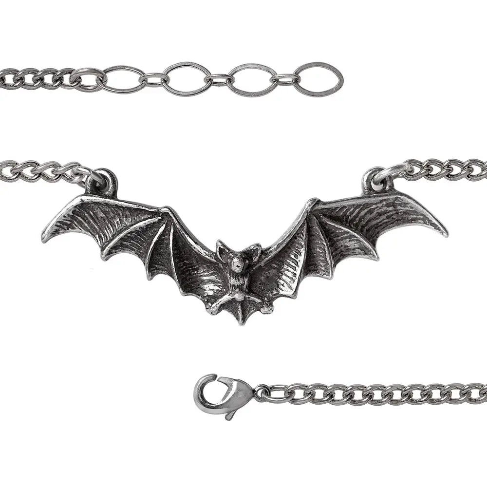 Productbeschrijving: Het essentiële symbool van gotische duisternis, een echt nachtdier in volle vlucht. Een vleermuisarmband gebaseerd op de originele Alchemy-hanger! (P121)