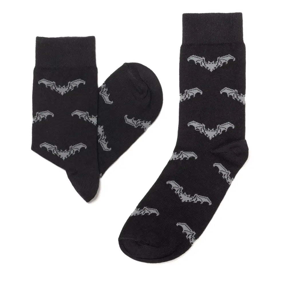 Productbeschrijving: Zwarte sokken met grijs herhalend vleermuisontwerp. Katoenen sokken. Kleur: Zwart, Grijs. Oorspronkelijk ontworpen door Alchemy, 6 'buitengewone' ontwerpen om uit te kiezen! Alchemy Socks zijn het perfecte en toch unieke cadeau voor die 'alt'-liefhebber in je leven!