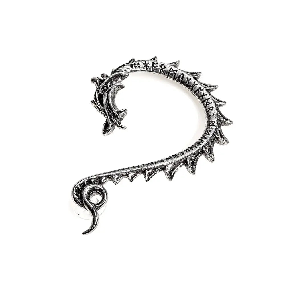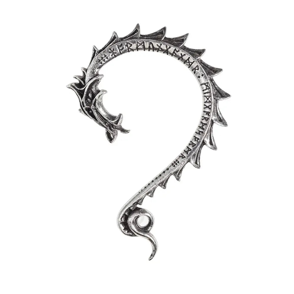 Productbeschrijving: Een met runen gegraveerde Viking-dragonoorsieraad met een chirurgisch stalen oorpin. Voor het linkeroor.