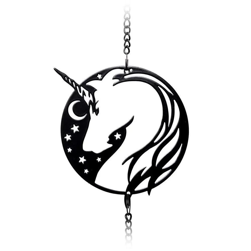 De magische kracht van de eenhoorn ligt in zijn uniciteit, want het is de enige overlevende van een oude afstamming, waarvan de metgezellen allemaal omkwamen in de grote vloed. Voeg je eigen unieke stijl toe aan elke kamer, huis of tuin met deze door Alchemy ontworpen hangdecoraties/windgongen. We hebben ontwerpen die bij elke alternatieve smaak passen.