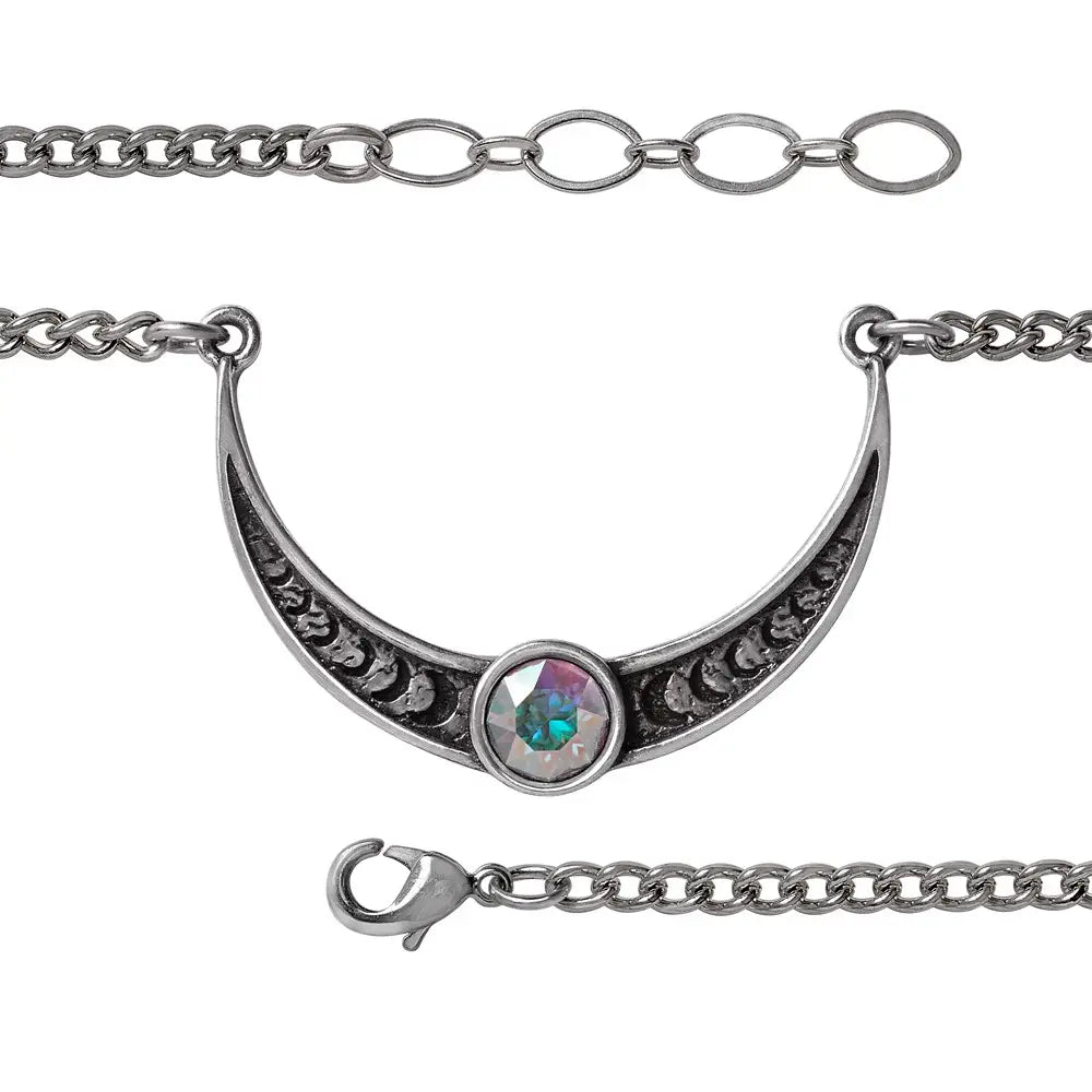 Productbeschrijving: Een halve maan, armband versierd met maanfasen en verfraaid met mystieke Oostenrijkse geslepen kristallen! Breng je innerlijke godin naar boven! Perfect te combineren met E476 (oorbel) en P950 (ketting).