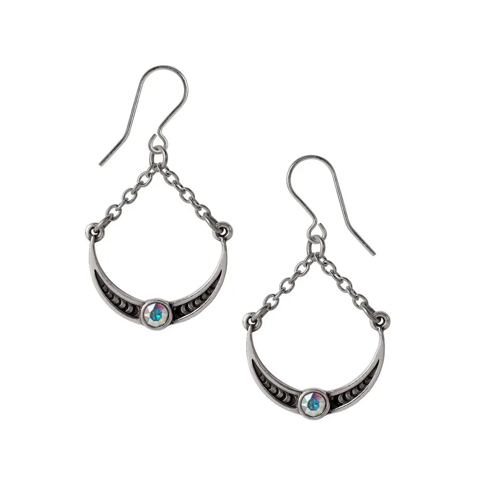 Productbeschrijving: Halve manen versierd met maanfasen en verfraaid met mystieke Oostenrijkse geslepen kristallen! Een verrukkelijk paar oorbellen dat op zichzelf al verbluffend is of perfect gecombineerd kan worden met A140 (armband) en P950 (ketting).