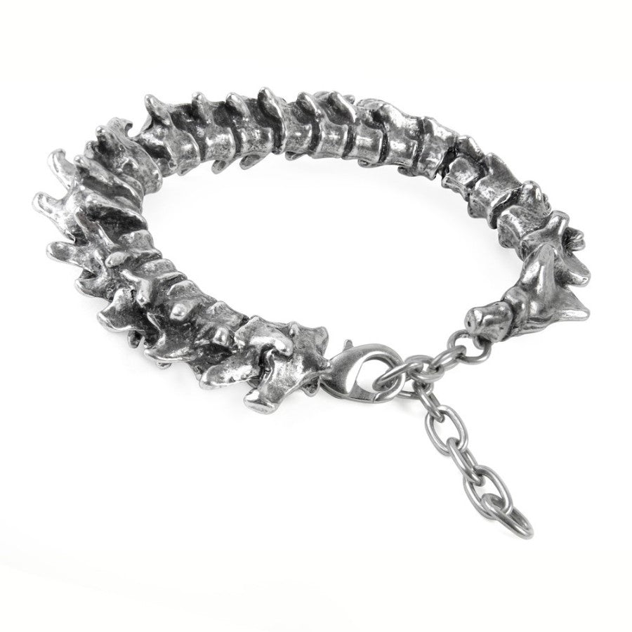 Productbeschrijving: Massief tinnen, gebeeldhouwde ruggengraat scharnierarmband, met veiligheidsketting.