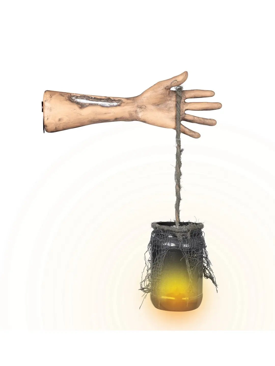 Arm met lantaarn om op te hangen. Met verlichting. H 41cm x L 32cm.