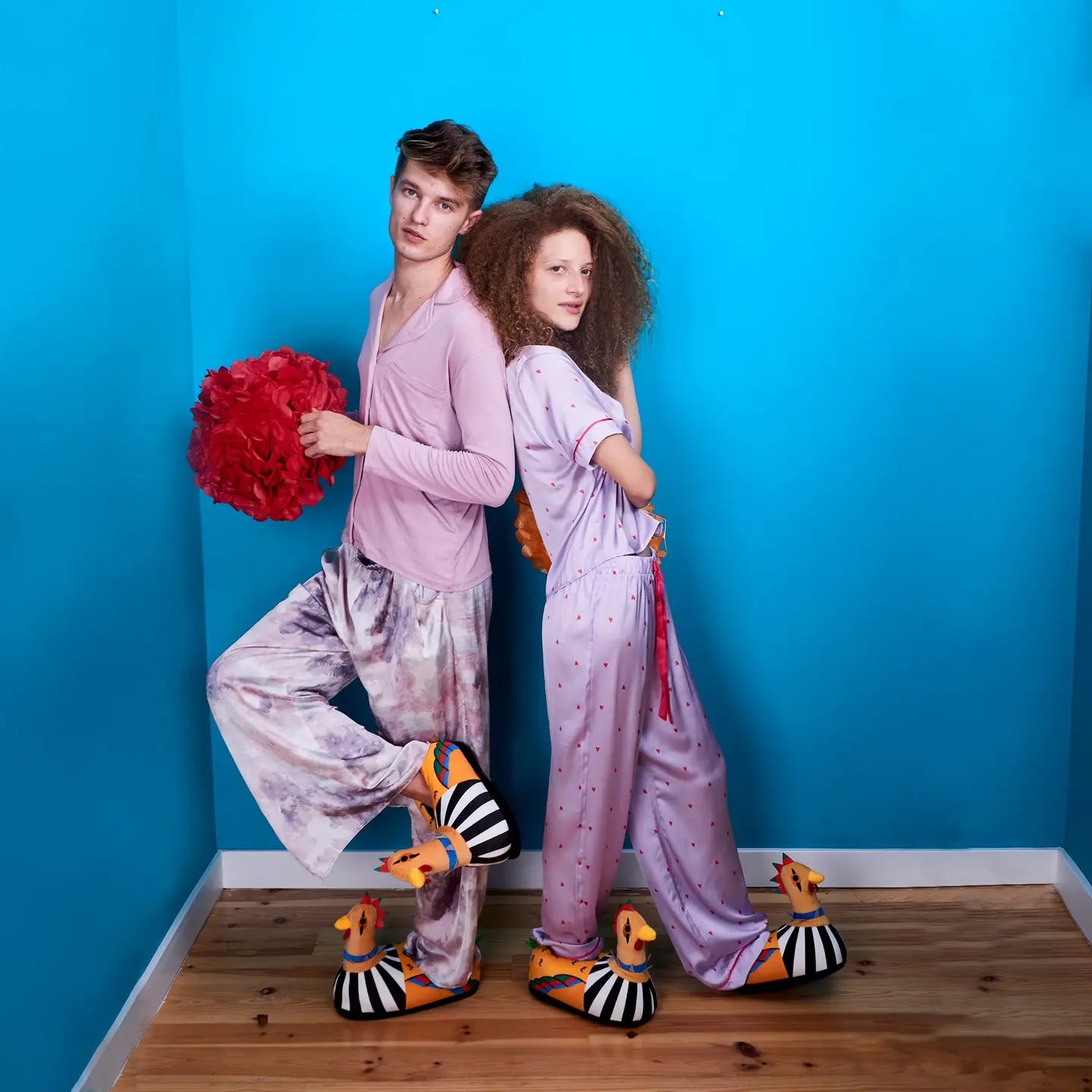 Dacht je dat het bij Coddies allemaal om schattige pantoffels en hilarische makreelschoenen ging? Denk nog eens na. We hebben een donkere kant en het is tijd om die te laten schitteren. Zeg Punk Chicken Slippers eens gedag.