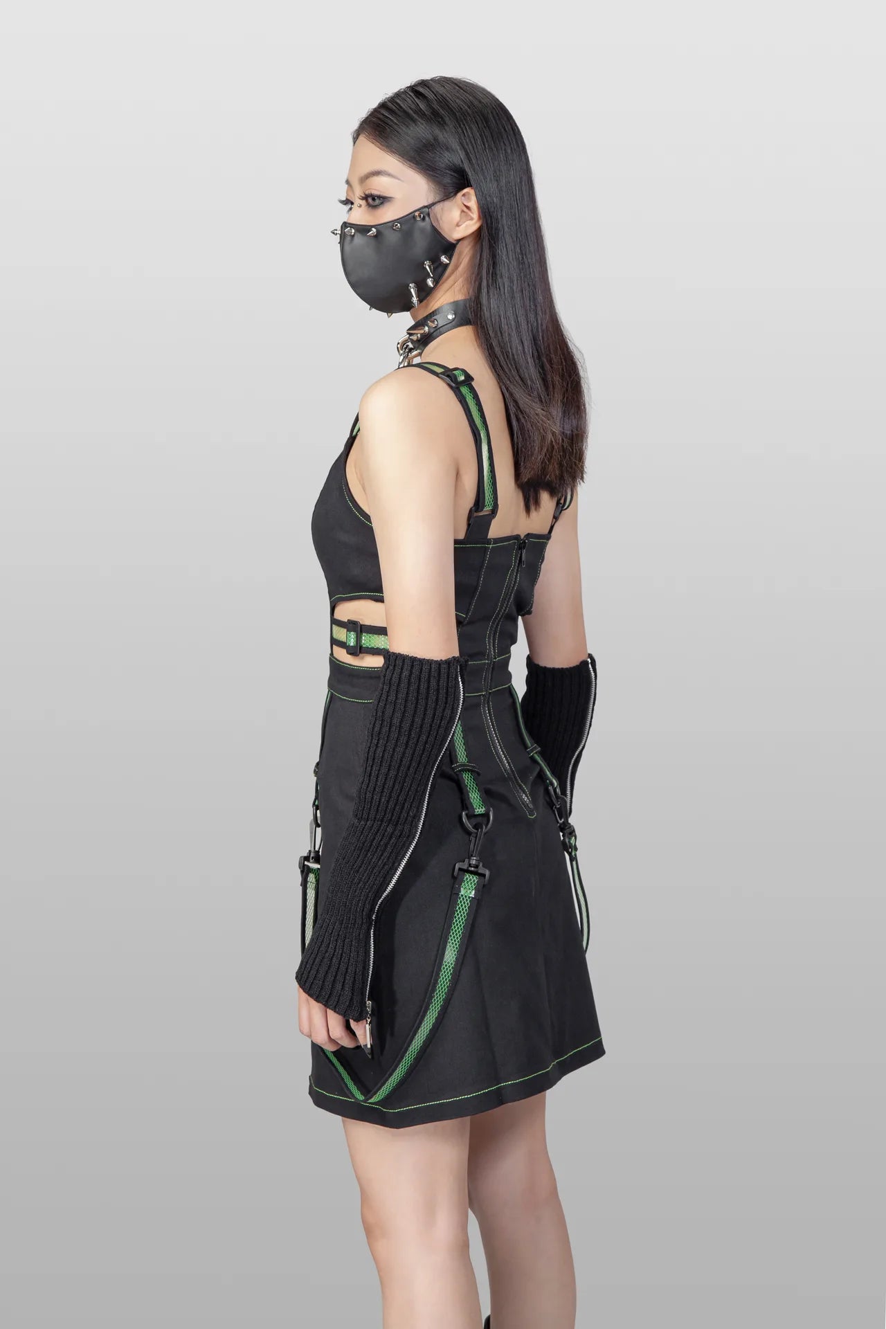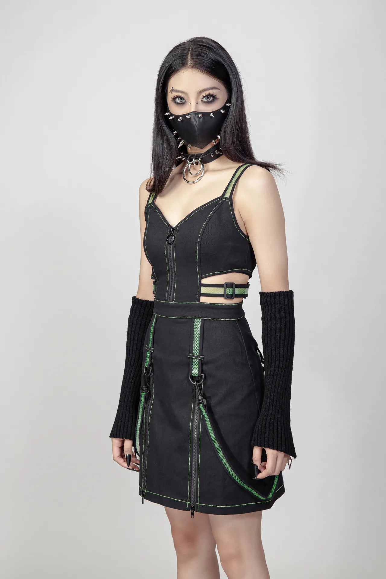 - Meerdere transparante plastic banden met een groen gaaspatroon - verstelbare schouderbanden, afneembare bretelbanden, banddetail in de taille