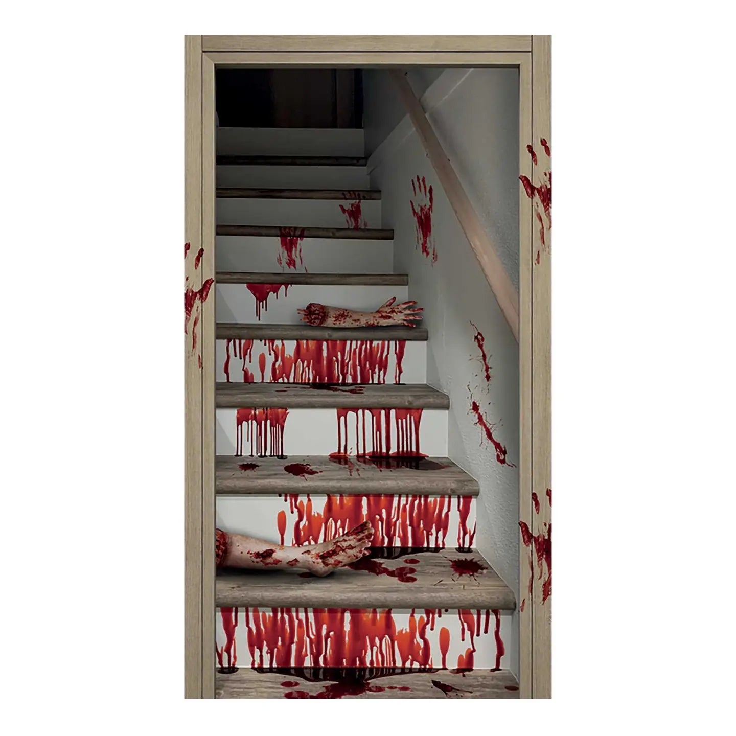 Deurdecoratie - bloederige trap: 180 cm x 80 cm geeft je deur niet alleen een griezelige uitstraling, je krijgt ook het gevoel dat deze trap echt bestaat omdat hij op het gordijn is gedrukt en er zo echt uitziet.