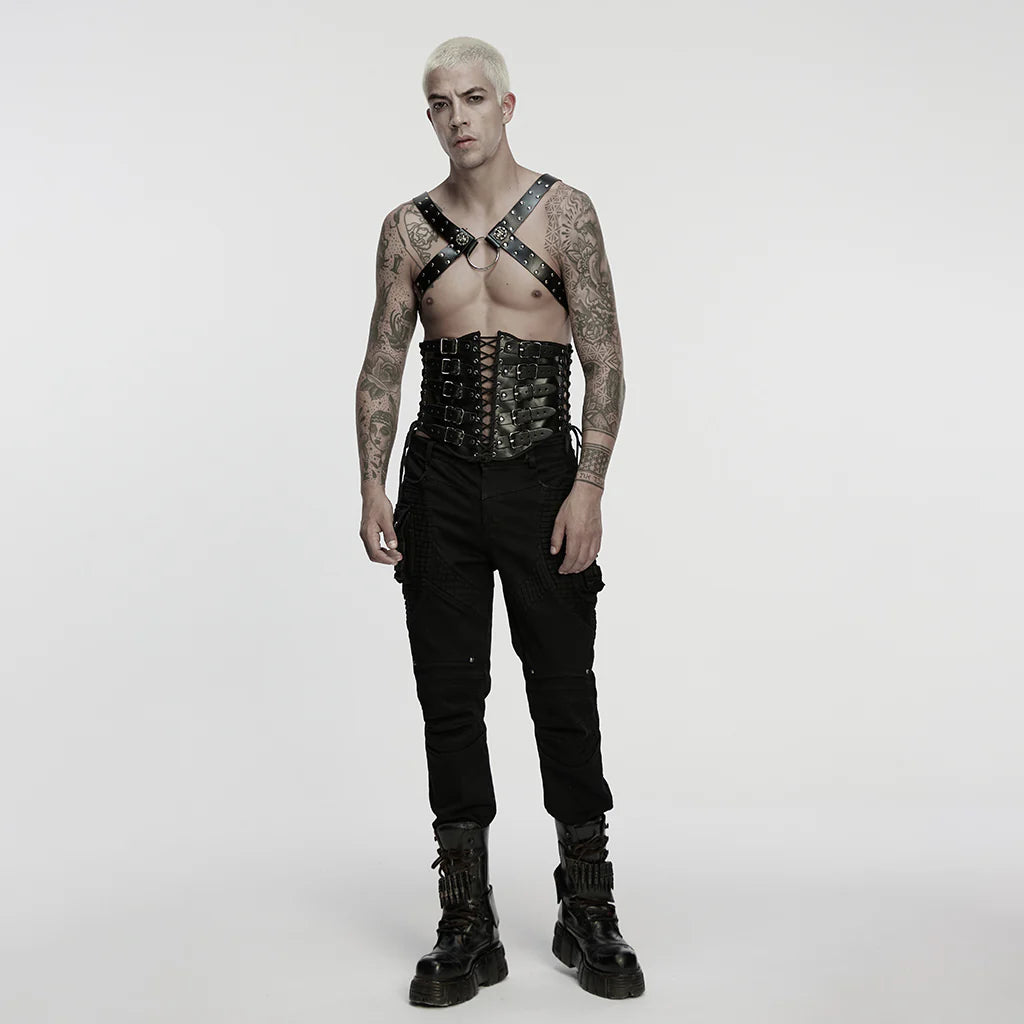 Omarm je eigen stijl en voeg een dynamische twist toe met dit opvallende Punk Accessories leren harnasje.
