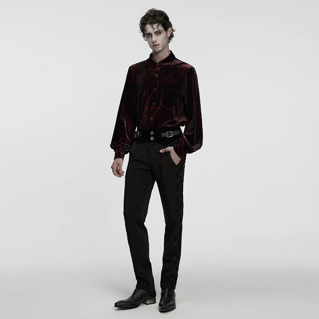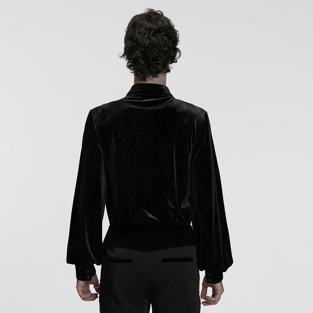 Stap in een wereld van gotische elegantie met dit prachtige fluwelen overhemd, dat tijdloze verfijning combineert met moderne mystiek.