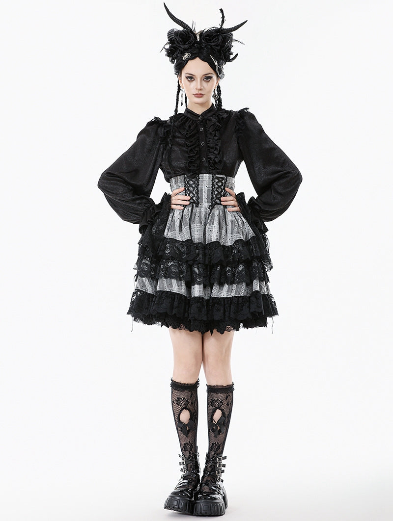 - Lagen zwarte organzastof met effen zwarte onderrok