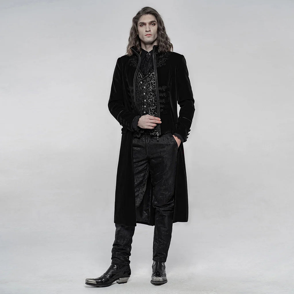 Lovecraft - Klassieke gotische stijl lange zwarte fluwelen herenjas.