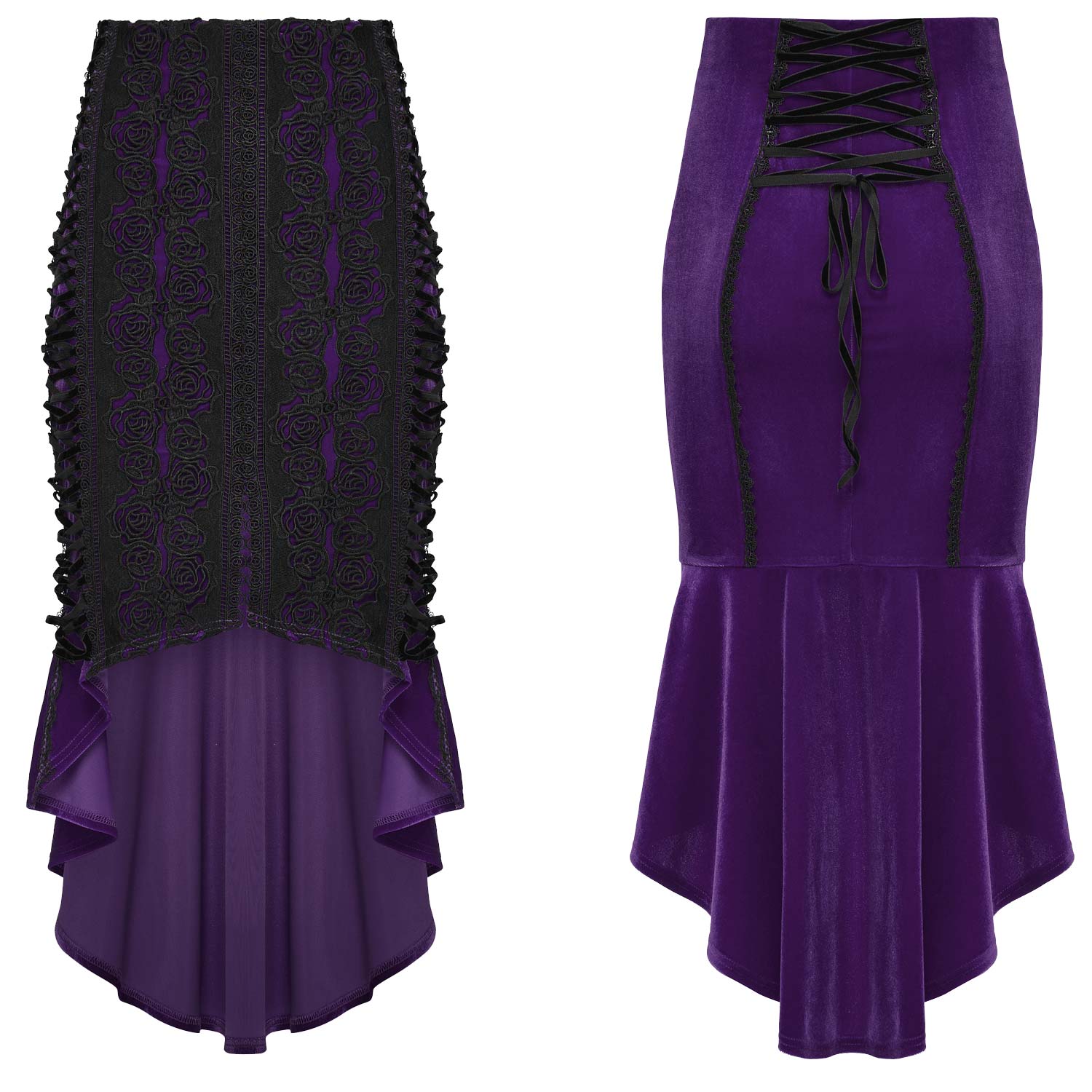 Pasvorm en Gevoel: Deze gotische rok is ontworpen om het lichaam te omarmen met een lichte elasticiteit, wat zorgt voor een strakke maar comfortabele pasvorm. Het zachte fluweel en het vakkundige maatwerk zorgen voor een sierlijke draperie die elke figuur flatteert en perfect past.