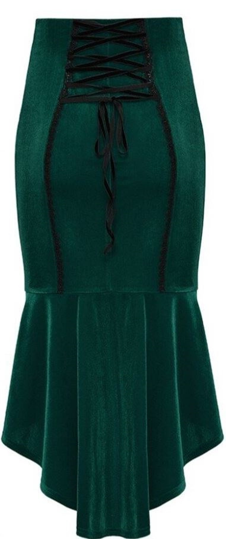 Pasvorm en Gevoel: Deze gotische rok is ontworpen om het lichaam te omarmen met een lichte elasticiteit, wat zorgt voor een strakke maar comfortabele pasvorm. Het zachte fluweel en het vakkundige maatwerk zorgen voor een sierlijke draperie die elke figuur flatteert en perfect past.