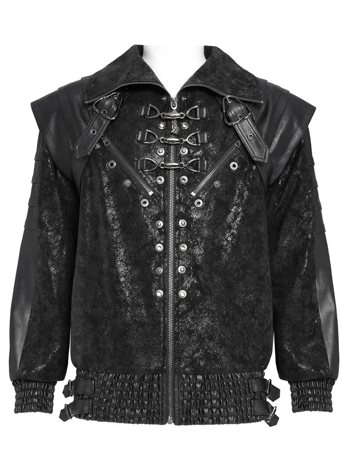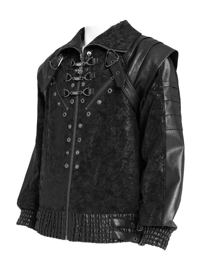 Deze gotische lange jas heeft een scherpe, militaristische silhouet met metalen spikes langs de schouders en mouwen. De asymmetrische kunstleren riem en de voorste gespen zorgen voor een gedurfde rand, terwijl de hoge kraag en de gespleten achterkant een dramatische finish geven. Perfect voor gotische, industriële of cosplay-looks, combineert deze jas donkere esthetiek met sterke, vechtklaar detail.