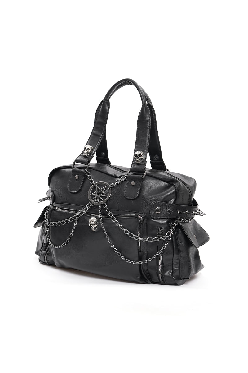 Dark Punk zwarte kunstleren plunjezak met kettingen en pentagram details