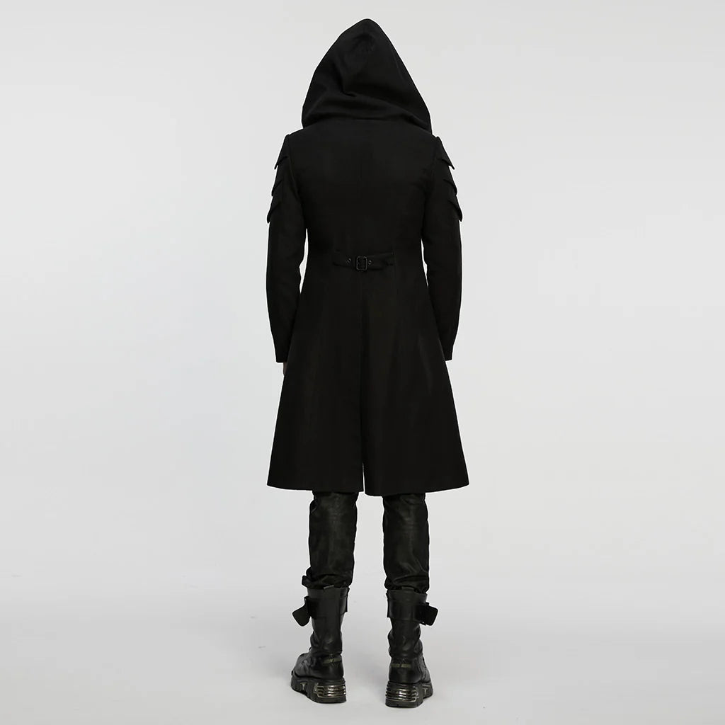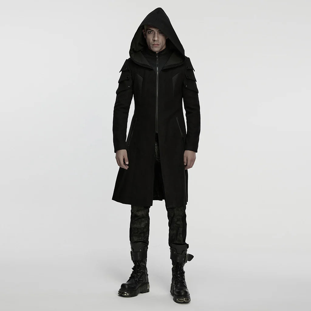 De gotische Hooded Punk Coat met Steampunk Schouderdetails, een gedurfde samensmelting van punkrebellie en goth-mystiek. Gemaakt voor wie durft op te vallen, is deze jas het ultieme statementstuk, met een opvallende capuchon en opvallende schouderdetails die doen denken aan steampunk-esthetiek. Perfect om een dramatische flair aan elk ensemble toe te voegen, zorgt deze jas ervoor dat je een moeiteloos edgy aura uitstraalt.