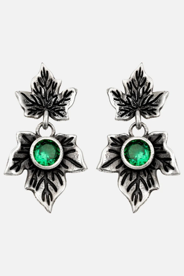 🌿 Poisoneed Ivy Oorbellen – Witchy Stud Earrings met klimopbladeren en groene kristallen 💚