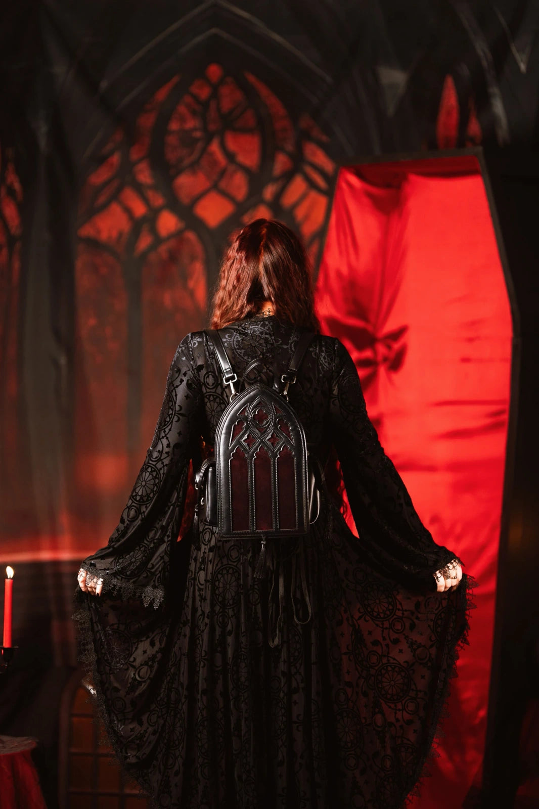 🦇 Een gotische katedraalrugzak, perfect voor vampier- of romantische stijlen.