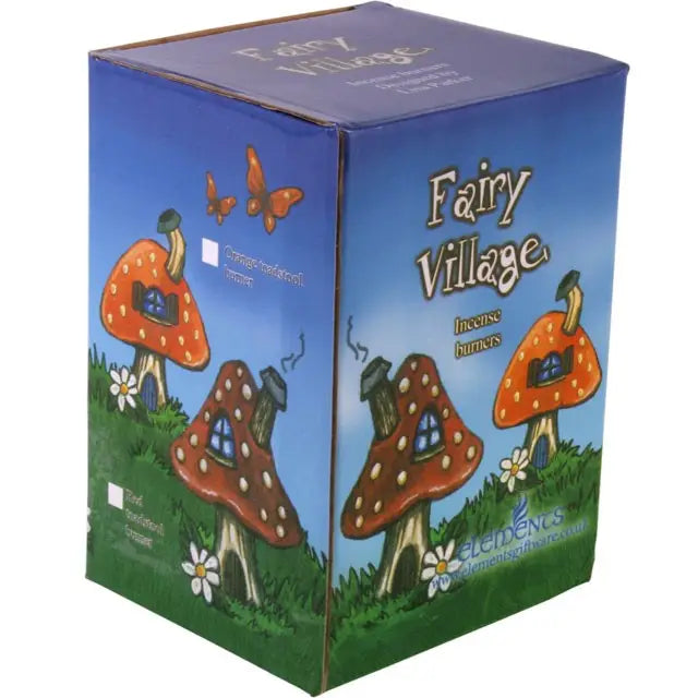 Een oranje paddestoel huis design wierook kegel brander. Wanneer de kegel brandt, stijgt de rook door de schoorsteen van het artikel. Ontworpen door Lisa Parker.