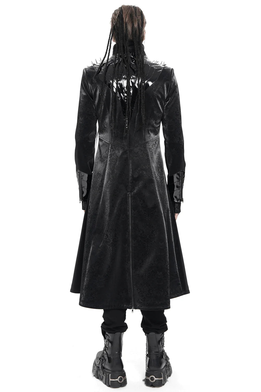 Deze jas bijt terug. "Blade" is geen simpele huls, maar een dreigende aanwezigheid – als een stedelijke schaduw, gewapend met stijl. De glanzende schouderplaten en stalen gespen schreeuwen rebellie, terwijl het matte brokaatpatroon eronder verhalen fluistert over oorlogen die nooit zijn gevochten. Voor nachten met bas, rook en elektrische spanning – of als je gewoon de donkerste in de kamer wilt zijn. Draag het als een waarschuwing.