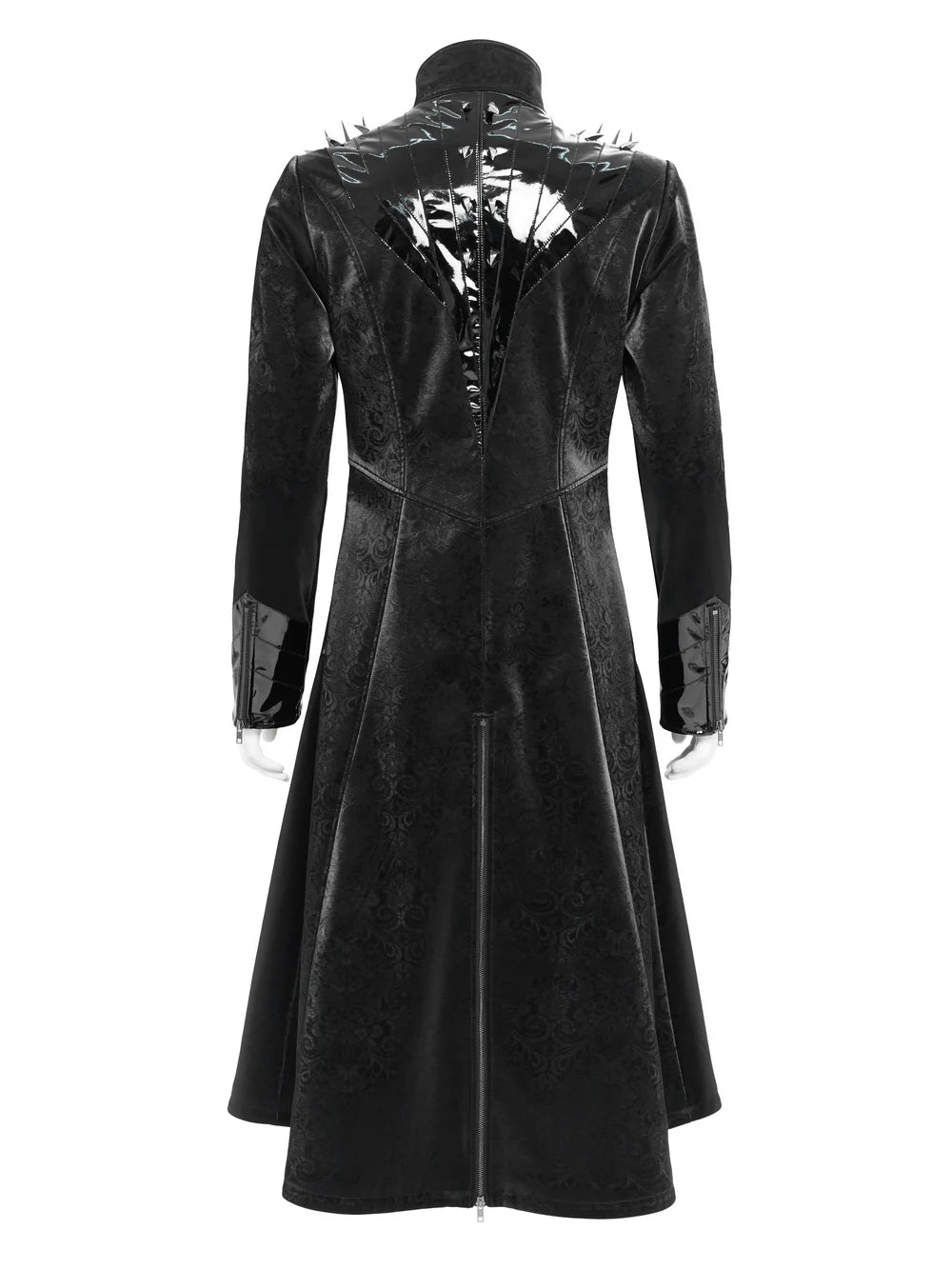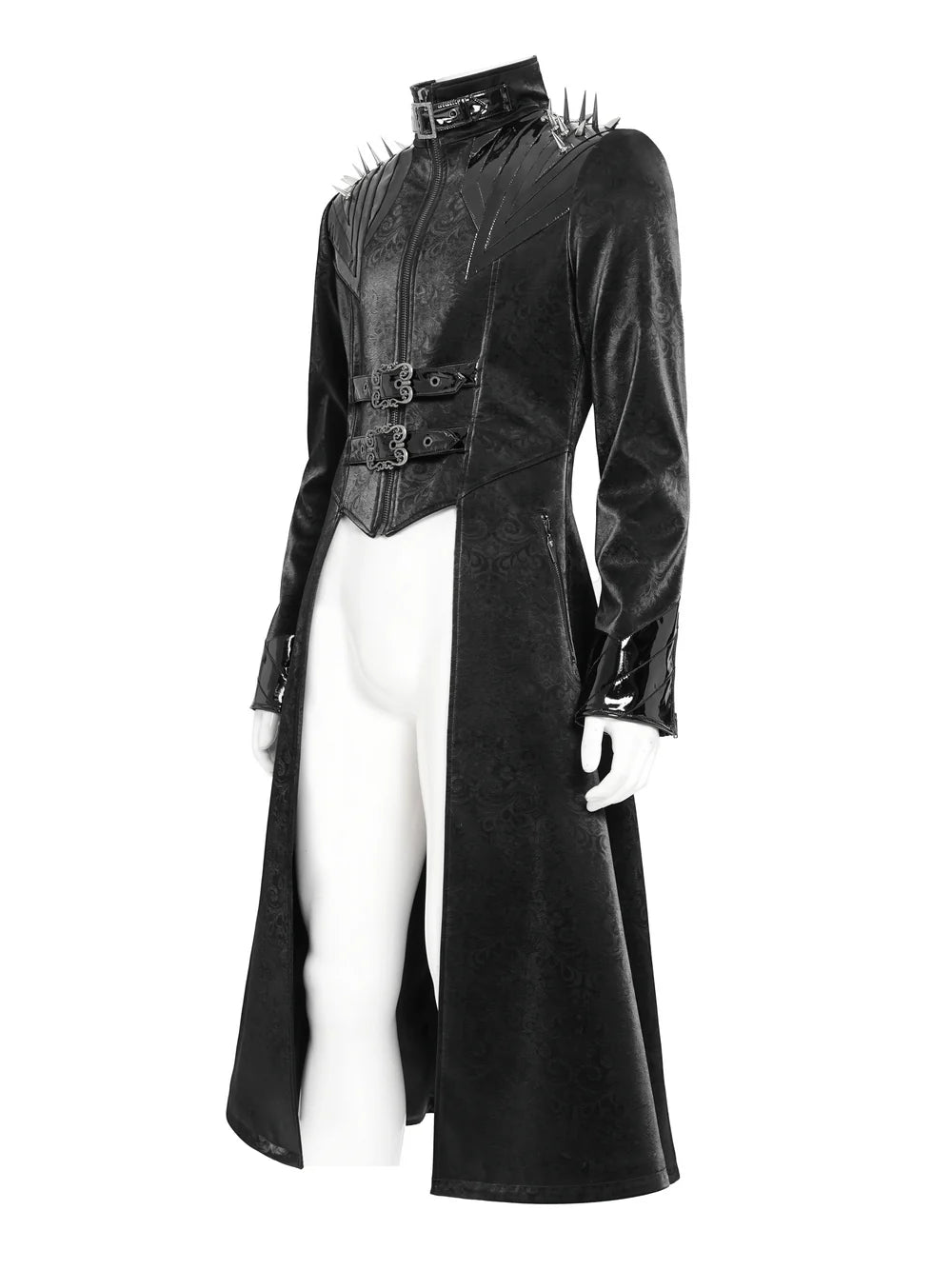 - Applicaties: Glanzende nepleren schouderpanelen met stekels, getextureerde brokaatstof